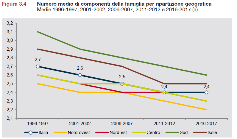 Se leggiamo l’ultimo rapporto ISTAT, abbiamodue cose da considerare: calo delle nascite e anche riduzione numero medio dei componenti a famiglia